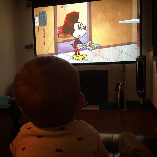Pre-bedtime cartoons in the theater.