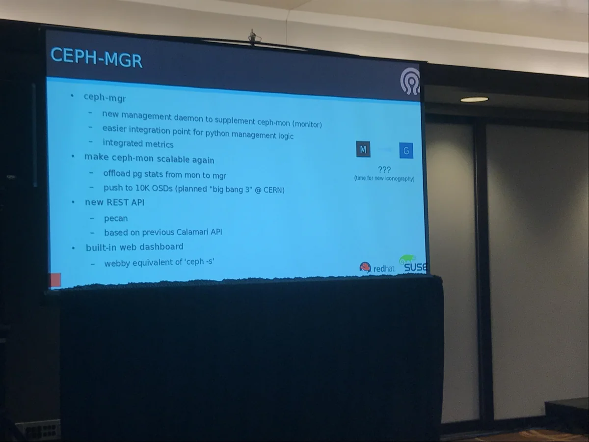 Photo May 11, 2017 at 12:13 PM Listening to @liewegas give a @Ceph community update Looking forward to Bluestore! Jonathan LaCour